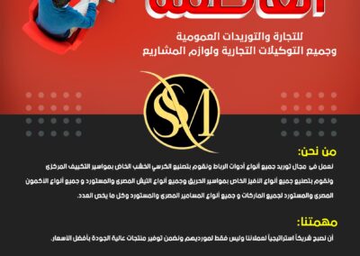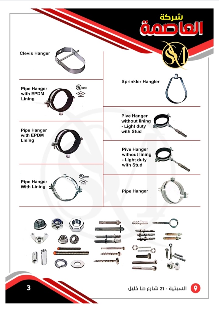 يشمل نطاق منتجاتنا مواسير سيملس، قطع لحام، قطع قلاووظ، فلانشات (محلي ومستورد)، محابس حريق، كراسي خشب لمواسير التكييف المركزي، أسياخ (تيش) بجميع الخامات (حديد – استانلس – نيكل)، الجويط، وسي كلمب.
