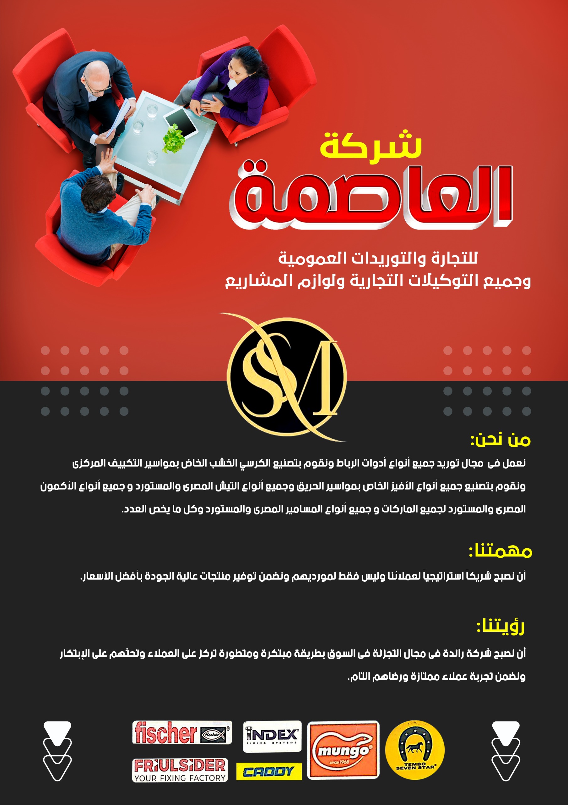 تمتد لأكثر من 15 عامًا في مجال التوريدات الصناعية، نفخر بتقديم مجموعة متكاملة من المنتجات التي تلبي احتياجات القطاعات المختلفة من المقاولات، والصناعة، والإنشاءات، معتمدين على جودة عالية وفريق فني متخصص هدفه الأول إرضاء العميل.
