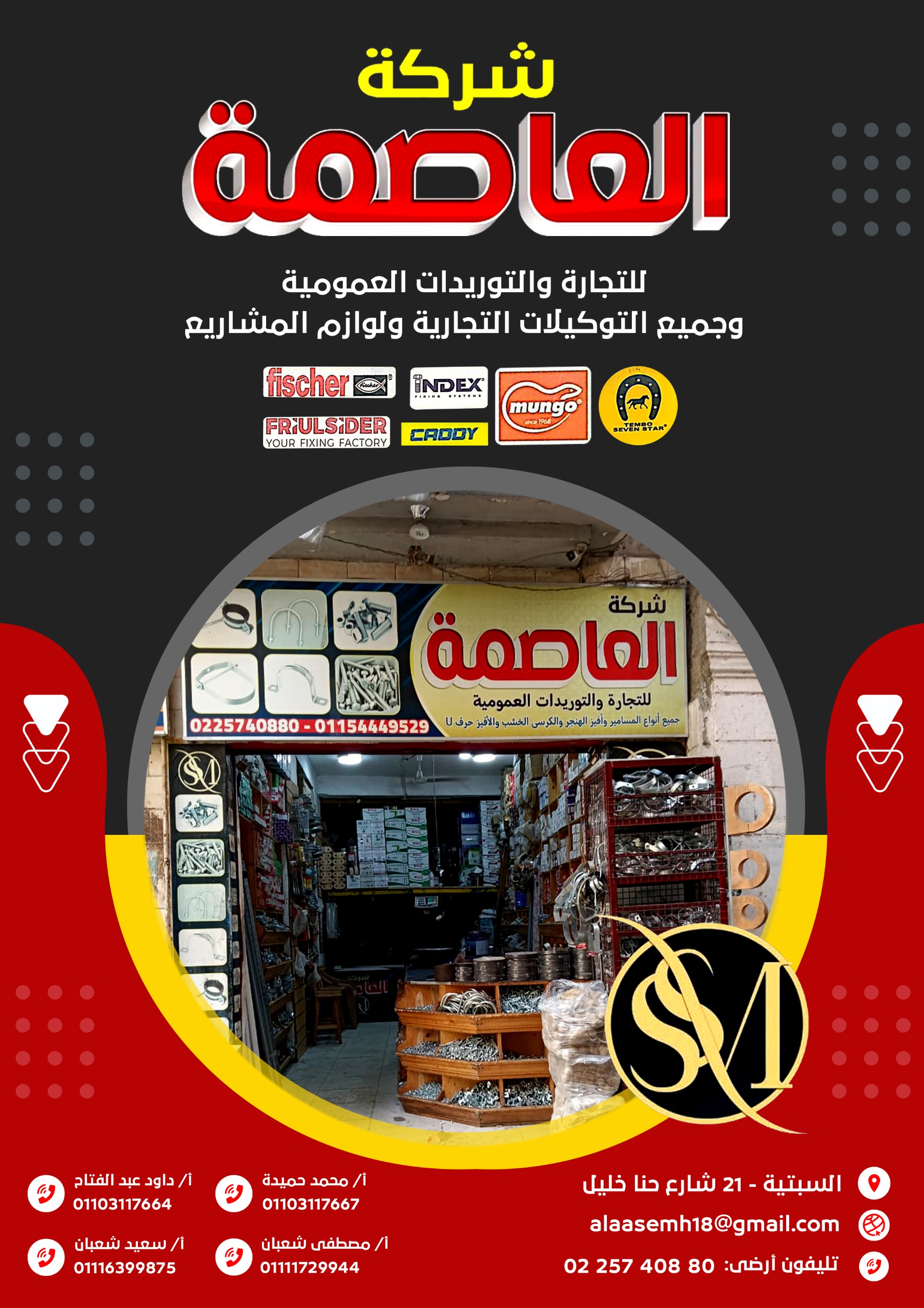 شريكك الموثوق في عالم ادوات الرباط من مسامير وصواميل وفيشرات وأفيز بجميع أنواعها وأحجامها، بالأضافةً إلى الفلانشات بجميع انواعها والعدد والأدوات – ومسمار الهيلتي – الجويط والسي كلمب – الكرسي الخشب – ودهانات متنوعة (لاكيه – برايمر – كابسي). كما نقدم قطع اللحام وقطع القلاووظ ومحابس الحريق بمعايير مضمونة.نحرص على تلبية احتياجاتك بسرعة وجودة، لنكون دائمًا خيارك الأول في السوق.